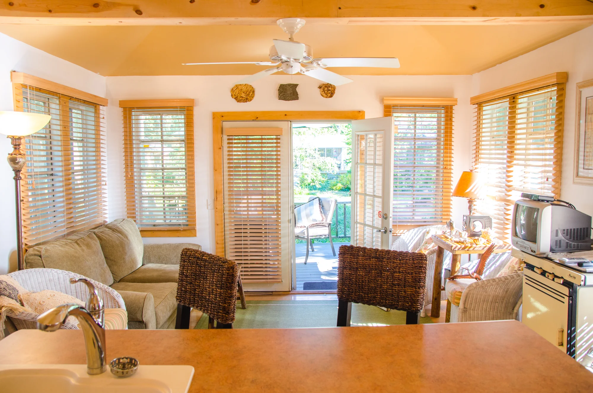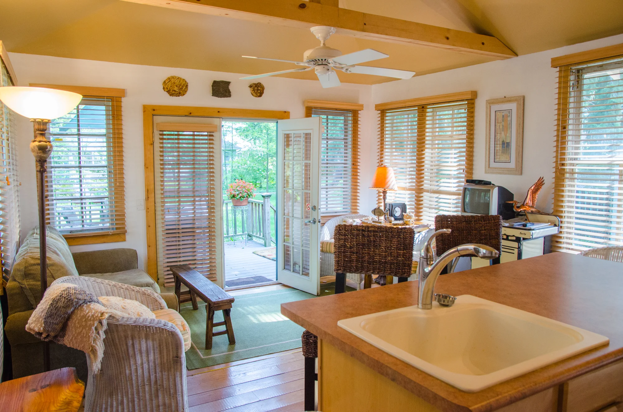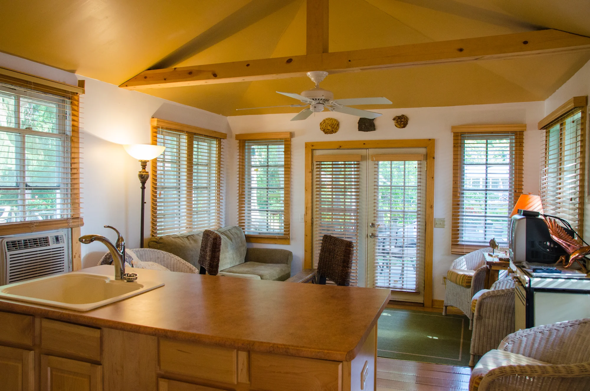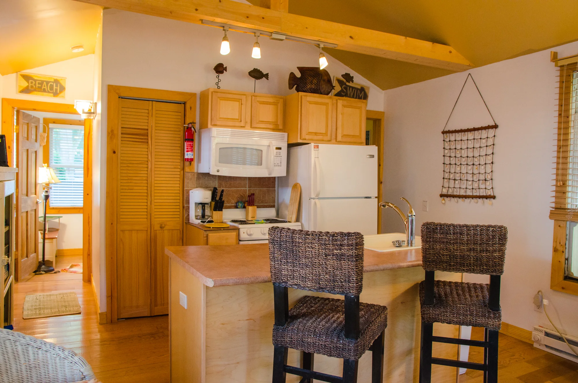 The one bedroom Herron is perhaps our most welcoming Villa also built nearly 100 years. ago. The Herron’s hardwood floors and vaulted ceilings will make you feel right at home. Like all of the Villas you have everything you need for indoor and outdoor cooking. The dining island flows into the great rooms and between the wicker chairs and again handcrafted cabinet and lights the Herron says “welcome to the beach”. The bedroom is graced with a hand crafted red cedar headboard and footboard. You can’t help to notice all of the details with your total comfort in mind.